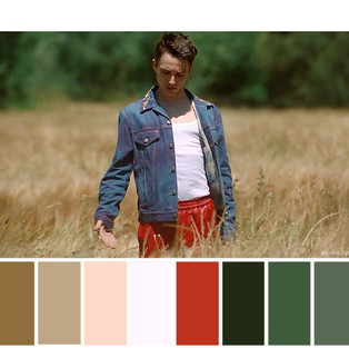 In this frame we can see the retro style that they wanted to follow in this video clip. You can see the great costume and color work behind it. Blue predominates in this part of the video and we can see how the image moves between different shades of it. Muted but bright tones fill the screen throughout the filme.